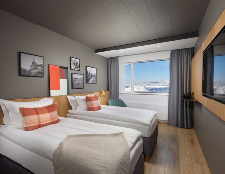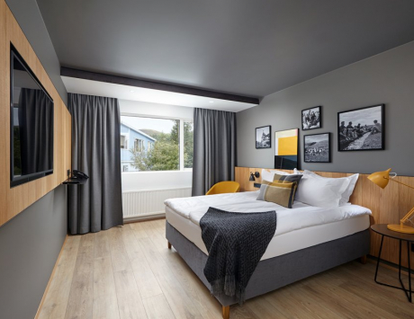 Cet hôtel de 68 chambres et suites est installé sur le port de Siglufjördur dans le nord de l'Islande. Cet hôtel propose de jolies chambres confortables avec douche/WC privatifs.